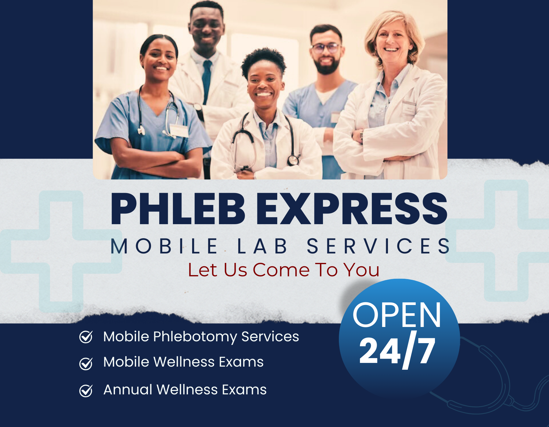 At Phleb Express, we are passionate about empowering patients through accessible mobile lab services, bringing the convenience of quality care directly to their doorsteps. Our mission is to enhance health journeys by providing compassionate, reliable blood collection for diagnostic, therapeutic, and donation purposes, ensuring that every patient feels valued and supported every step of the way.